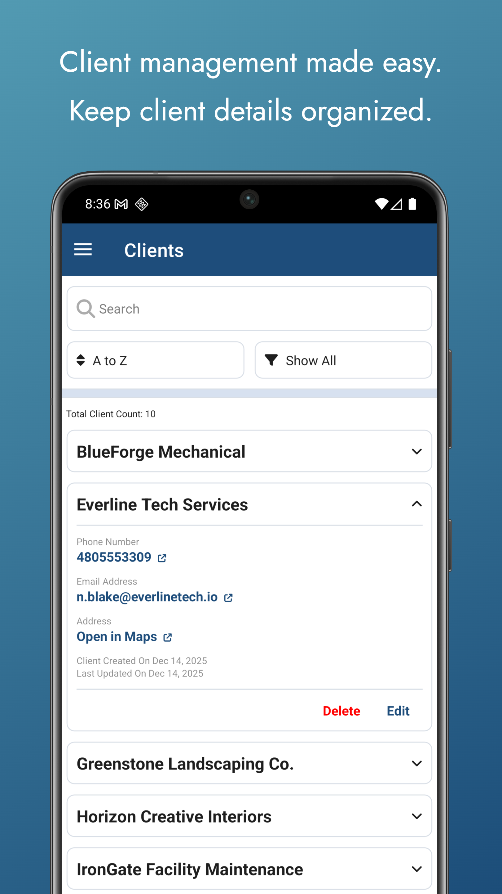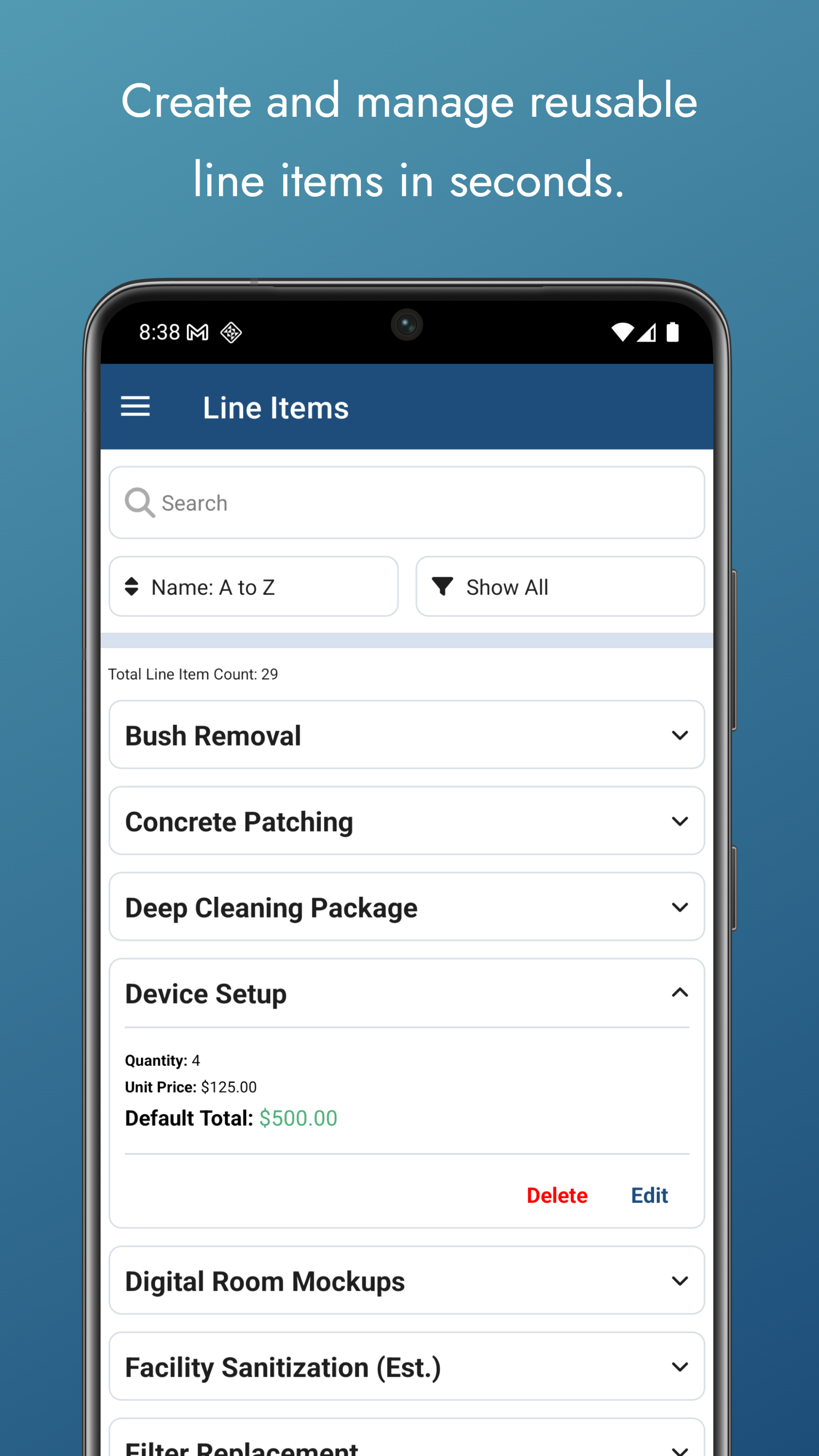 Save client details including contact information and addresses. Build a reusable list of services and materials so future documents can be created even faster.
